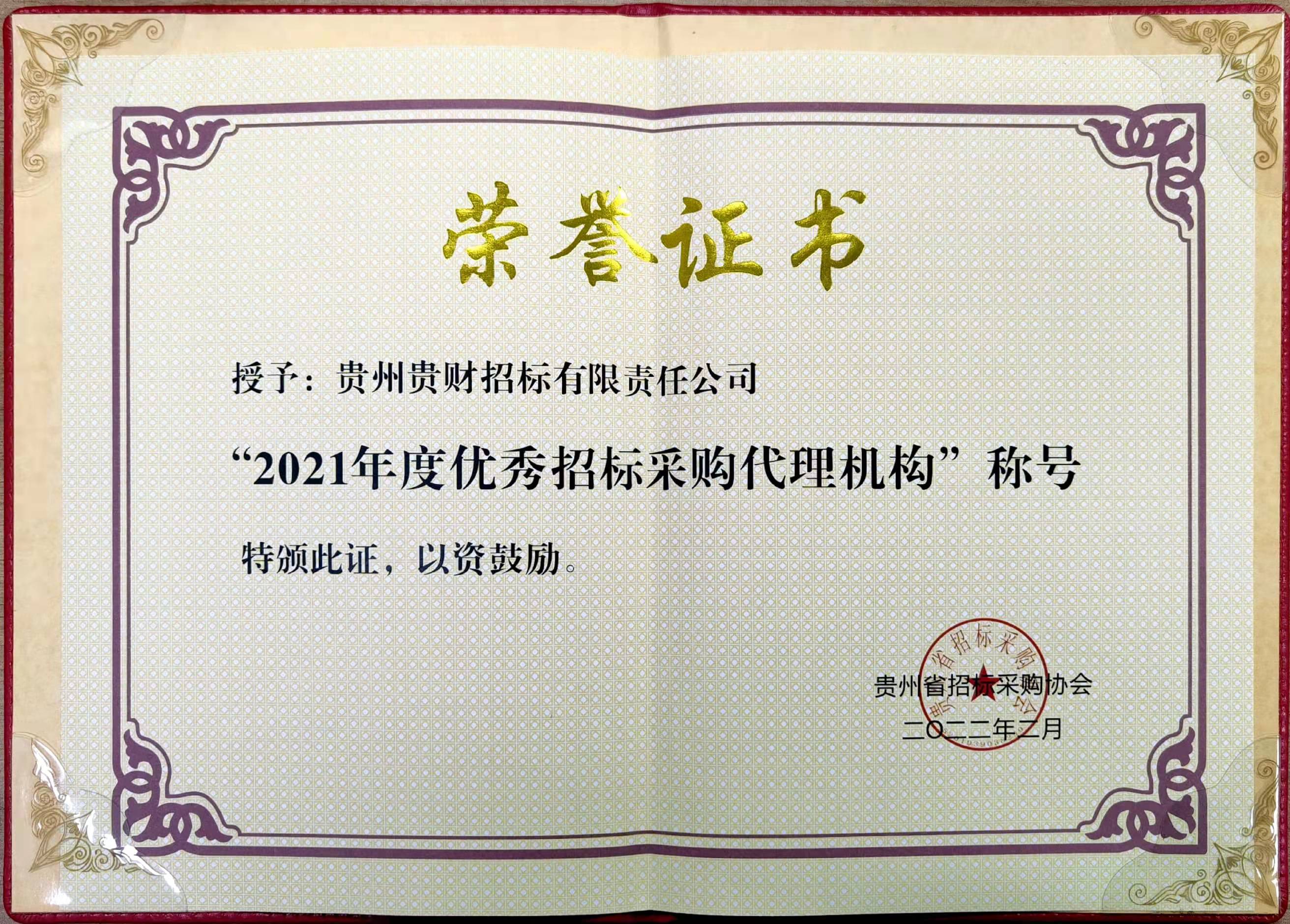 2022年2月18日,貴財招標憑借長期以來的專業(yè)水平、誠信口碑和廣大客戶的大力支持,再次榮獲貴州省招標采購協(xié)會頒發(fā)的“2021年度優(yōu)秀招標代理機構(gòu)”稱號,這是自2018年評選活動舉辦以來,公司連續(xù)第四年獲此榮譽。